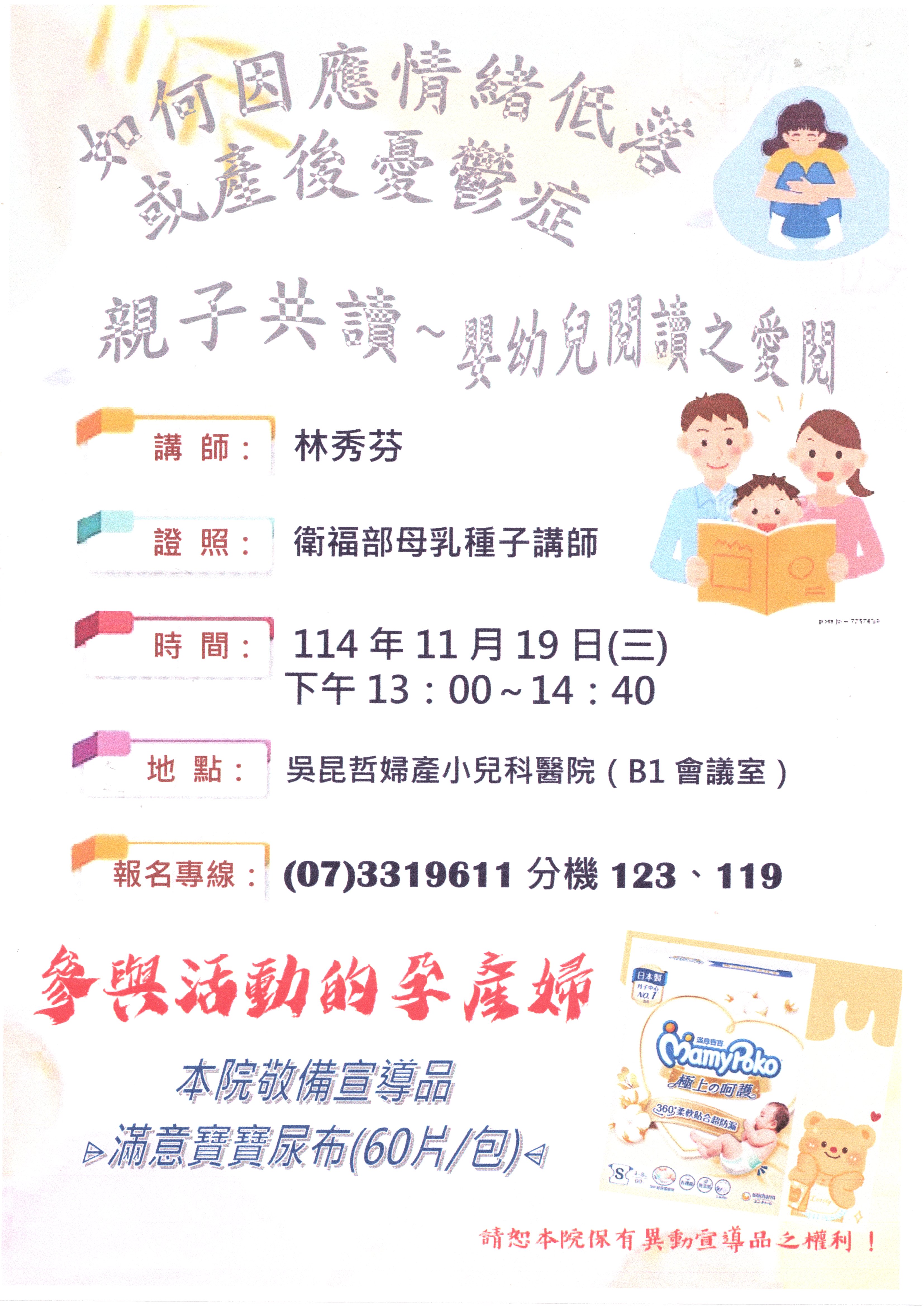 【 114.11.19(三)吳昆哲婦產小兒科醫院~母乳支持團體免費課程,歡迎一起參與 】