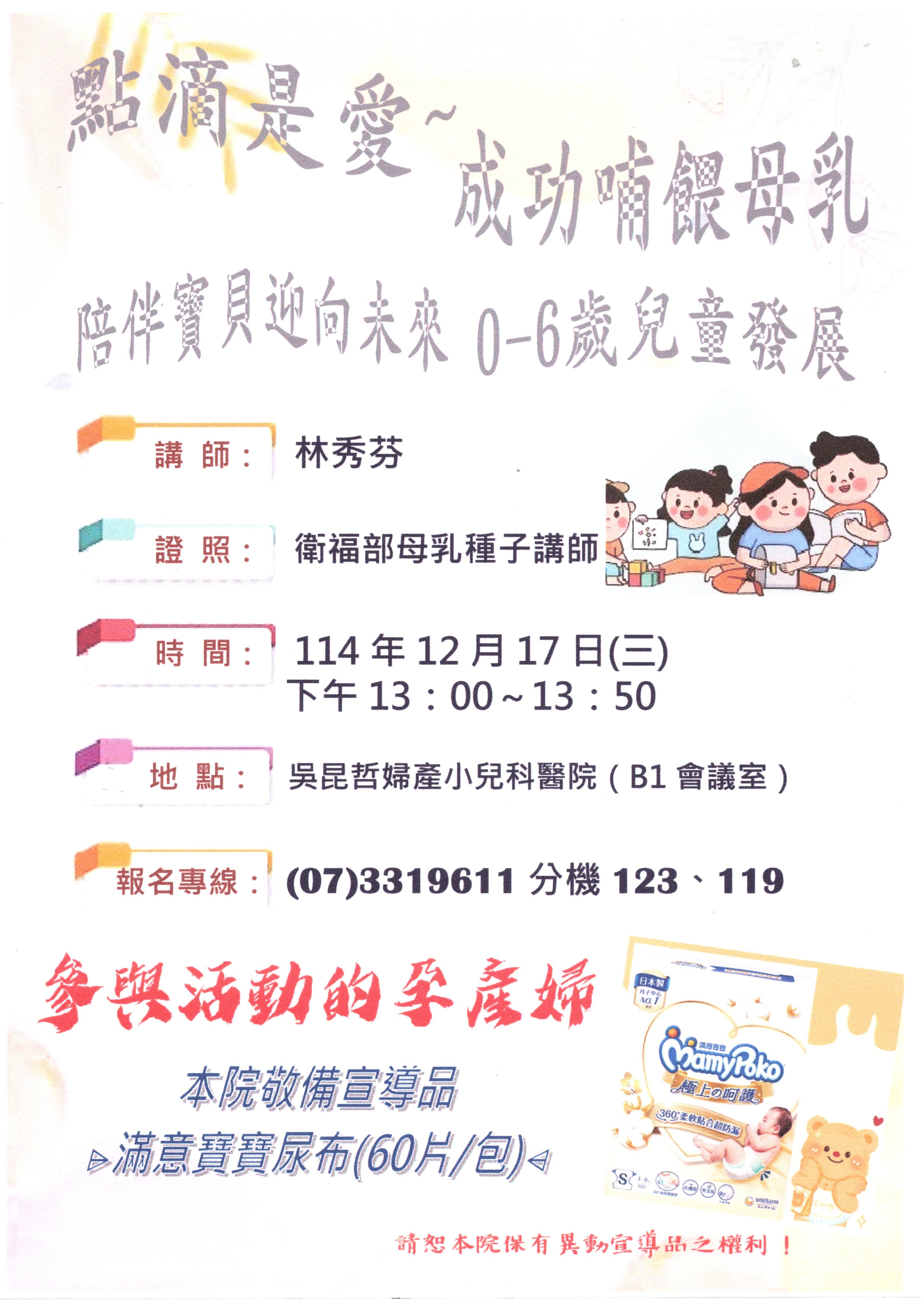 【 114.12.17(三)吳昆哲婦產小兒科醫院~母乳支持團體免費課程,歡迎一起參與 】